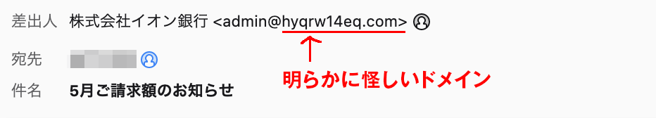 フリーメールが使われていたり、明らかに怪しいドメインは、フィッシング詐欺を疑った方が安全です。