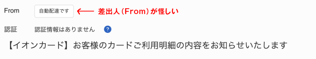 差出人(From)に企業名が入っていない場合(例:自動返信です)は、フィッシング詐欺を疑った方が安全です。